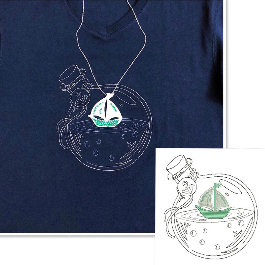 Дизайн "Парусник в бутылке" вышивка и кулон ФСЛ. Автор Ирина.