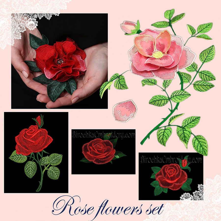 Набор дизайнов "РОЗЫ-2" - Роза 3Д аппликация, Роза ФСЛ, Роза с капелькой росы, Красная Роза. Автор Birochka.