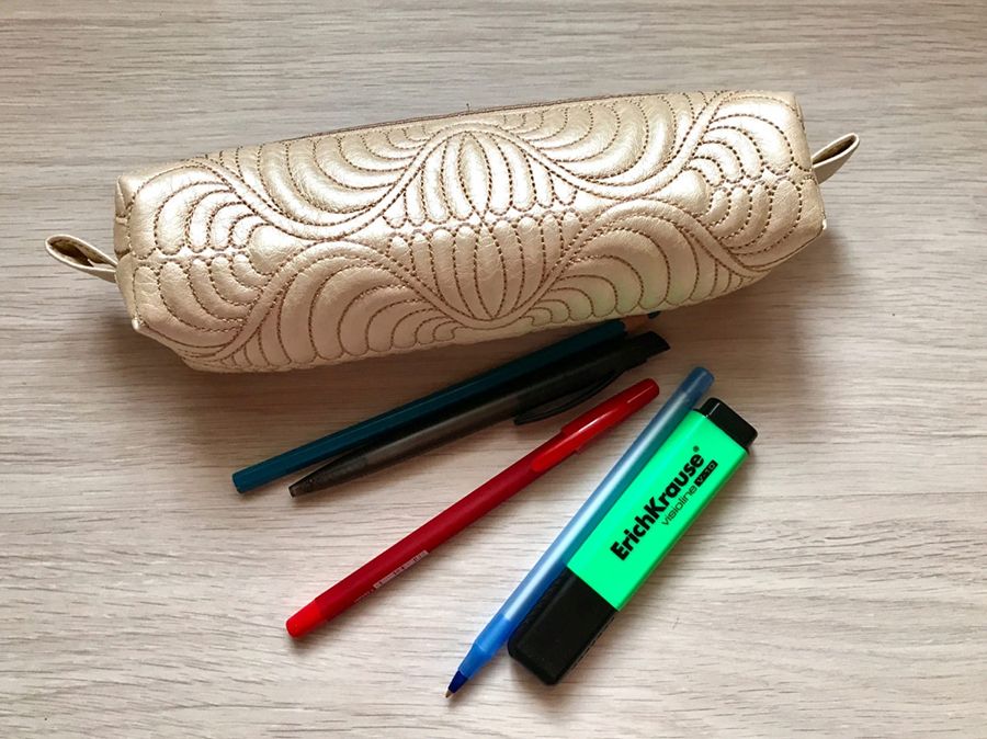 Дизайн пенала-пятиминутки «Золотые волны» в технике трапунто. Автор annalila.