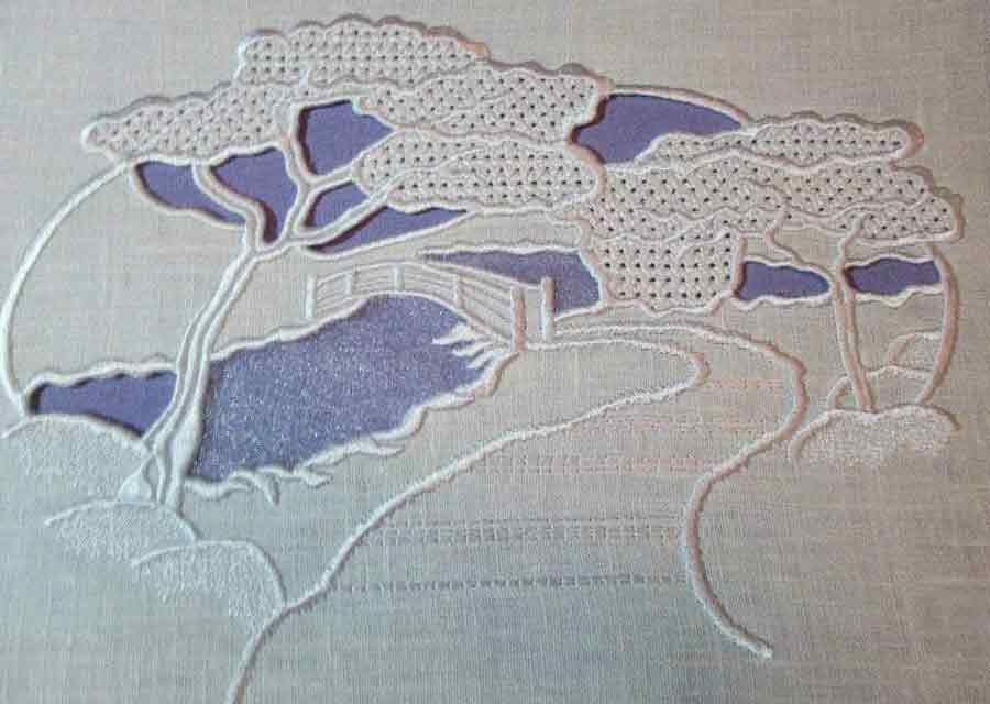 Дизайн "Парк" с элементами ришелье, аппликации и мережки. Автор leks.