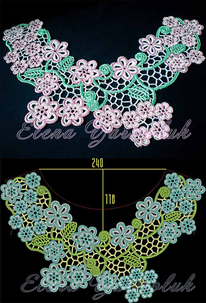 Кокетка выполнена в технике ирландского кружева.