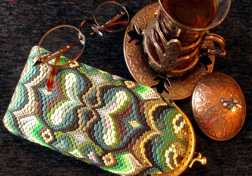 Дизайн очечника с вышивкой барджелло.