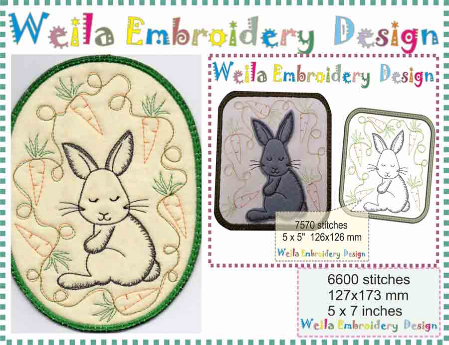 Дизайн "Заяц с морковками" прихватка и коврик. Автор weila.
