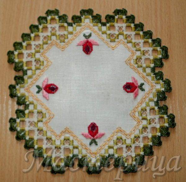 Дизайн салфетки с ажурными элементами в технике хардангер. Автор Мастерица.