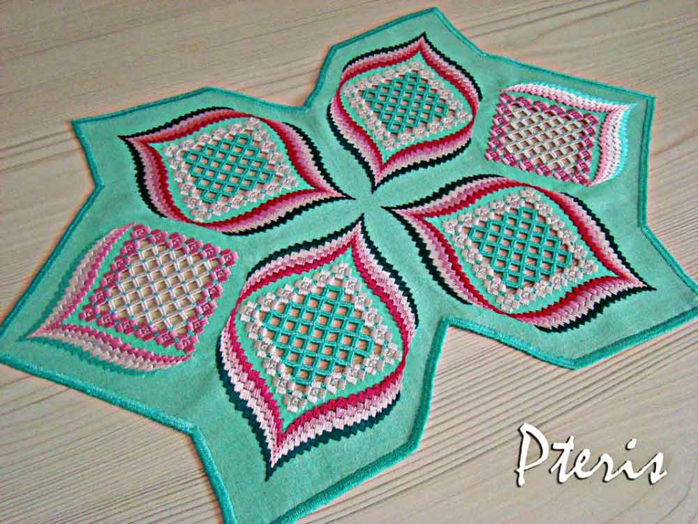 Дизайн салфетки "Четырехлистник" в технике хардангер. Автор Мастерица.
