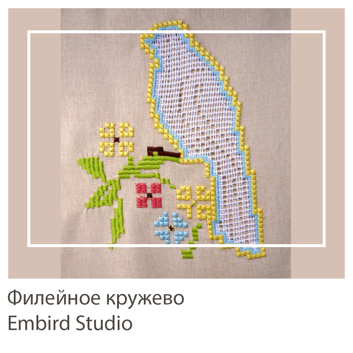 Дизайн компьютерной машинной вышивки создан во время обучения по урокам курса Филейное кружево в программе Embird Studio