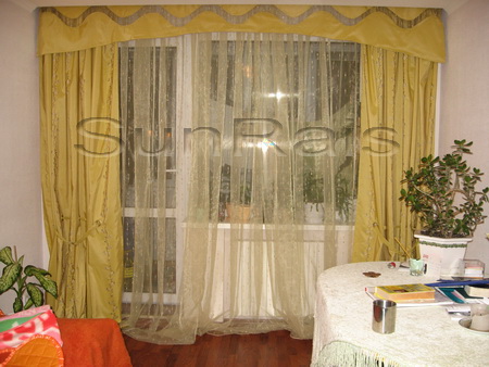 Девочки ,сегодня закончила работу.Шила два комплекта на два окна(жёсткие в зеркальном отражении),с ночными шторами золотого цвета.