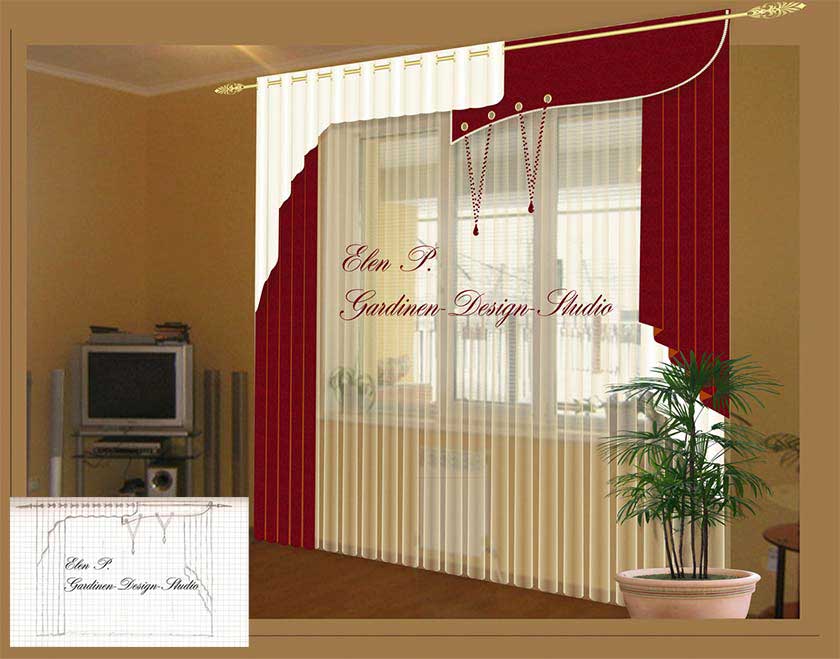 Когда заливаешь текстуру то образуется полоса на шторе посмотрите. Место стыка рисунка! Я не знаю как залить так что бы на всю штору было.