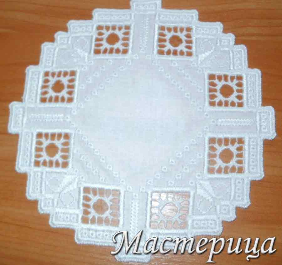 Дизайн салфетки с ажурными элементами в технике хардангер. Автор Мастерица.