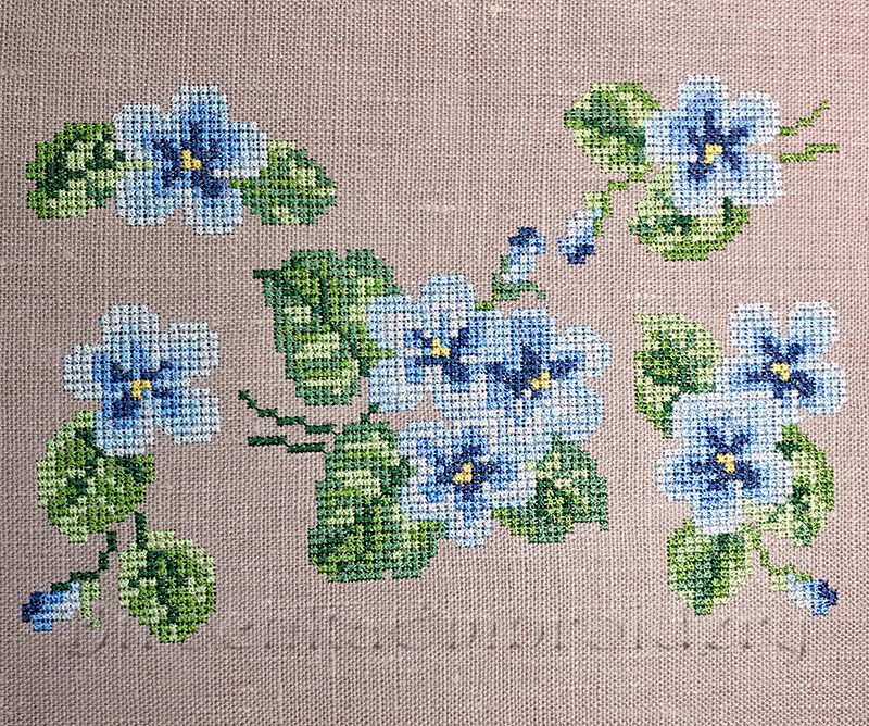 Набор дизайнов "Голубые фиалки" в технике крестик. Автор Birochka.
