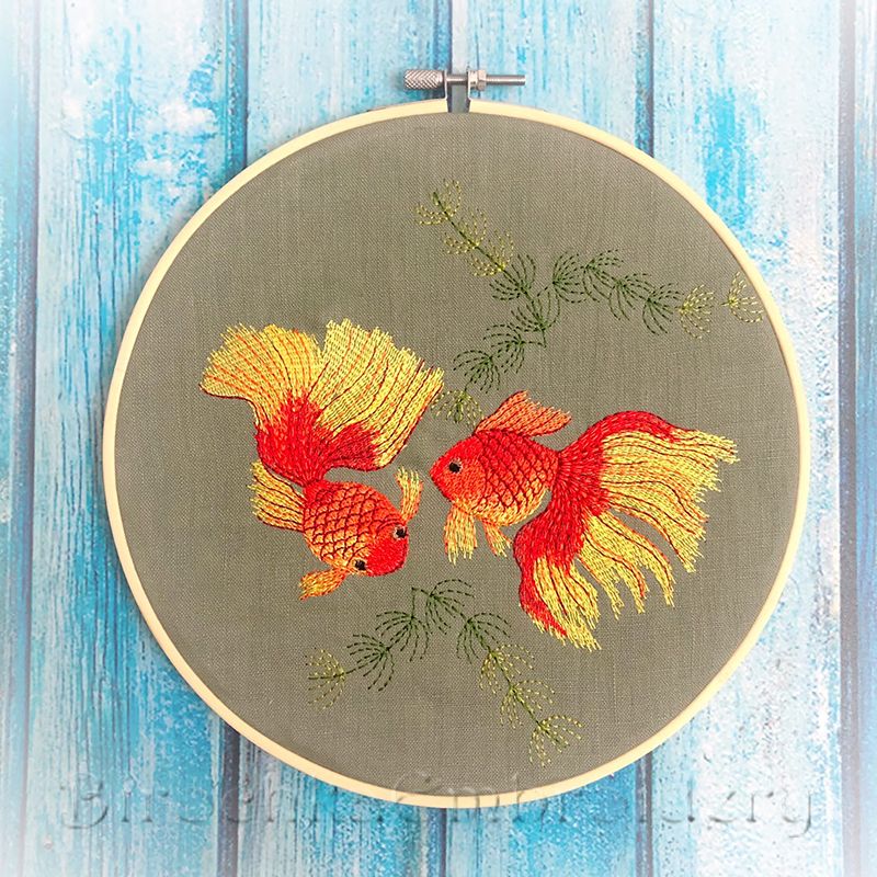 Дизайн "Золотые рыбки" в технике художественная гладь. Автор Birochka.