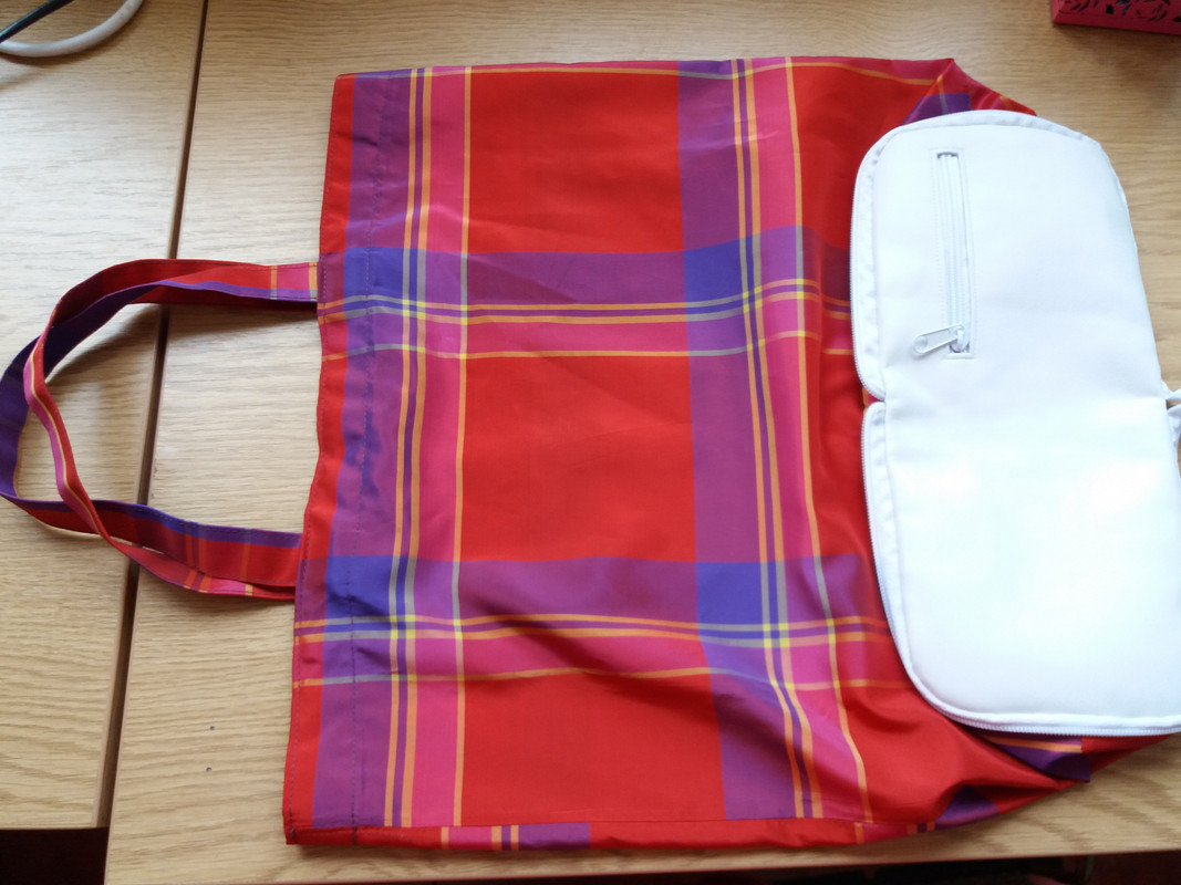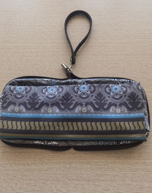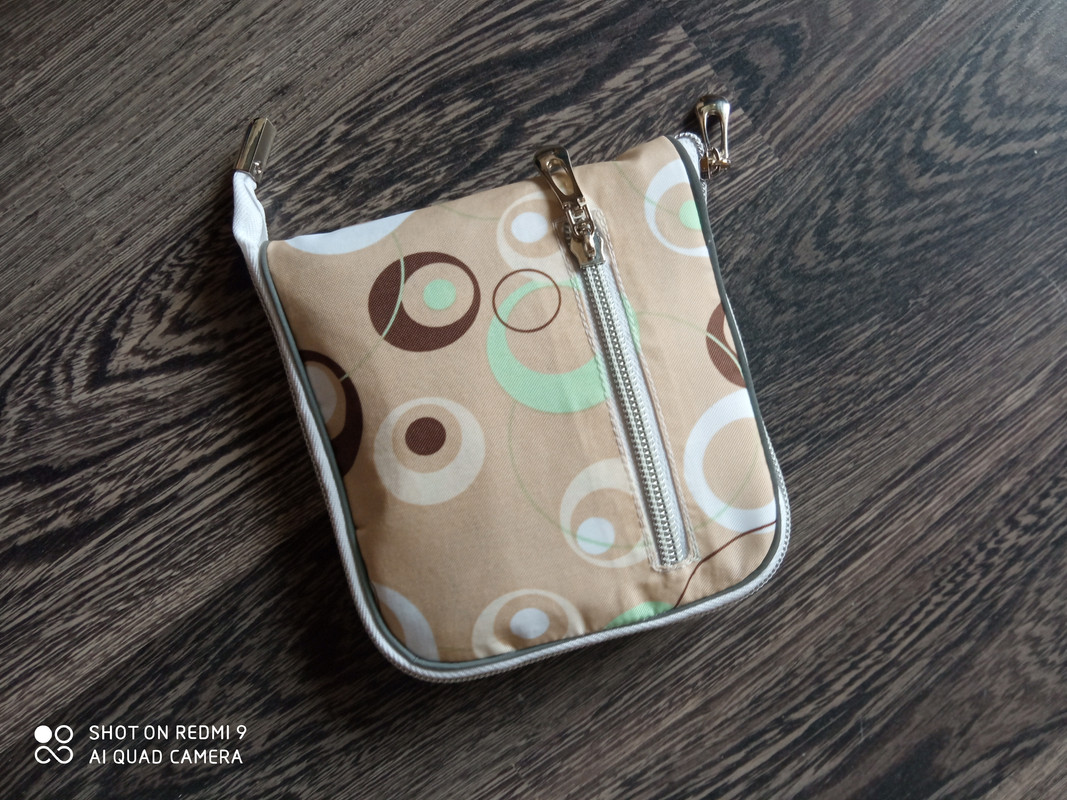 ...Ручку закрепила на кончик молнии на кнопку. Можно и так носить как сумочку.